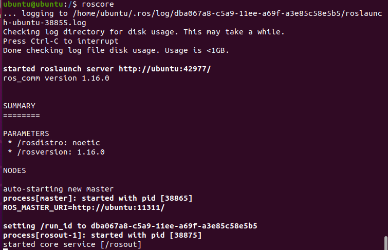 이제 roscore을 통해 ROS가 잘 설치되었는지 확인해주자
