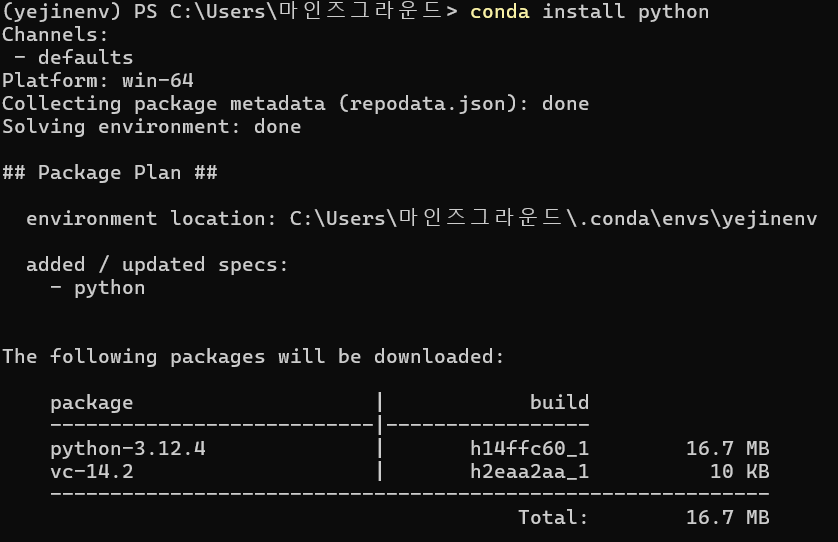 conda activate python // 파이썬 설치