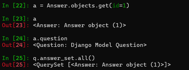 >>> a = Answer.objects.get(id=1) #답변 조회방법