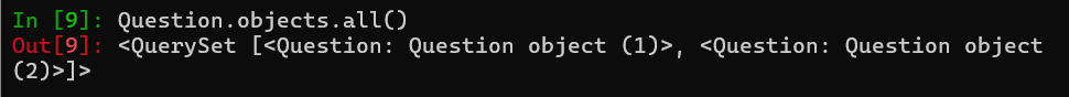 이렇게 수정하고 Question.objects.all() 함수를 다시 실행 해 보자.