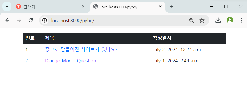 먼저 질문 목록 템플릿에 부트스트랩을 다음처럼 적용하자.