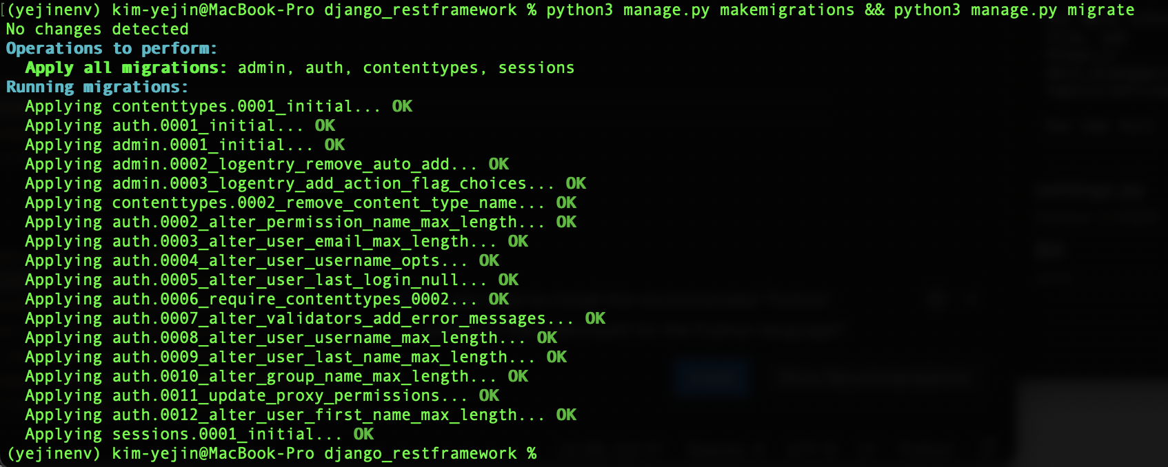 python3 manage.py makemigrations && python manage.py migrate