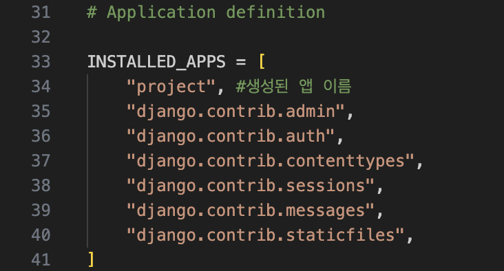 'project', #생성된 앱 이름