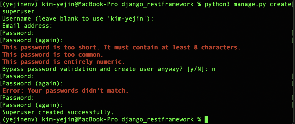 python3 manage.py createsuperuser