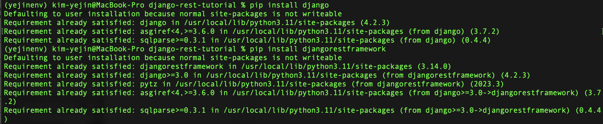 pip install djangorestframework