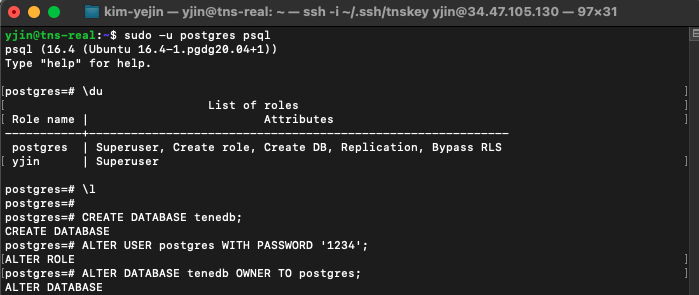 [yjin@good--boy root]$ psql -U yjin -d tenedb