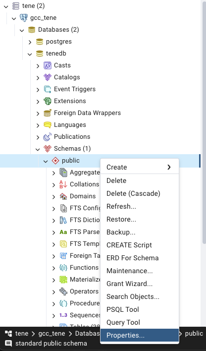 3) 기존 서버와 새서버 둘 다 스키마의 public propierties를 동일하게 맞춰준다.