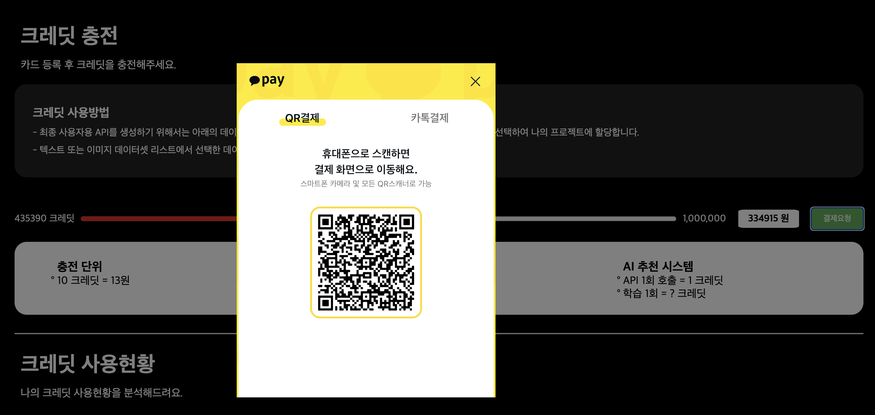 소셜 로그인 다음으로 꼭 해보고 싶었던 것이 있다면 간편결제였다. 진짜 결제까지는 아니더라도 qr 코드를 발급하고 결제 정보가 db에 저장되는 로직을 구현해보고 싶었다. 그래서 소셜 로그인