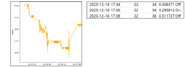 12월 13일 23시경부터 12월 18일 9시경까지 측정했으며, 측정된 환경 데이터 값은 다음과 같다.